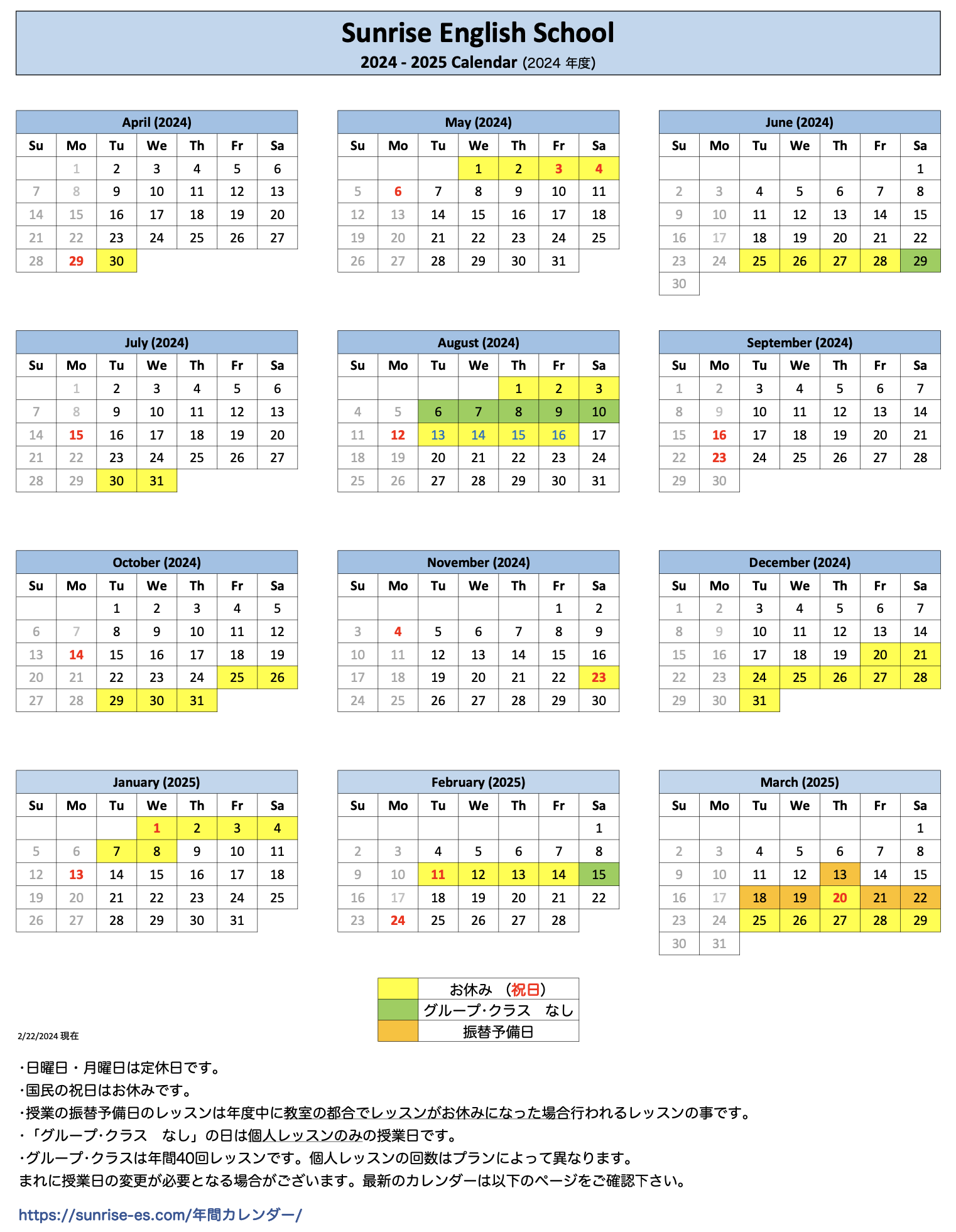 2024 サンライズ英語教室年間カレンダー Published 3月 18, 2024 at 1522 × 1962 in 2024 サンライズ英語教室年間カレンダー サンライズ英語教室 2024年度 カレンダー