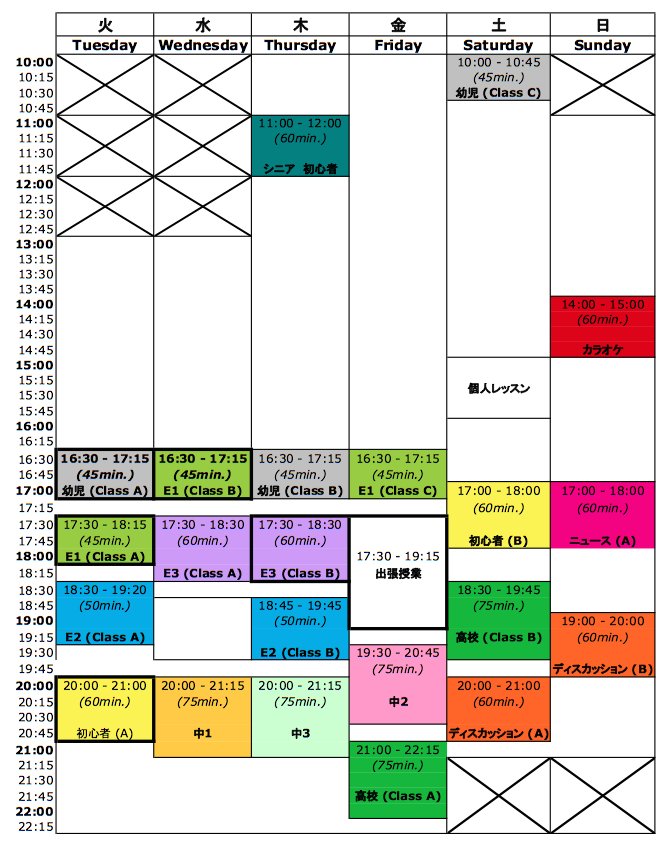 E2 クラス C (金曜日 18:00 – 19:00)